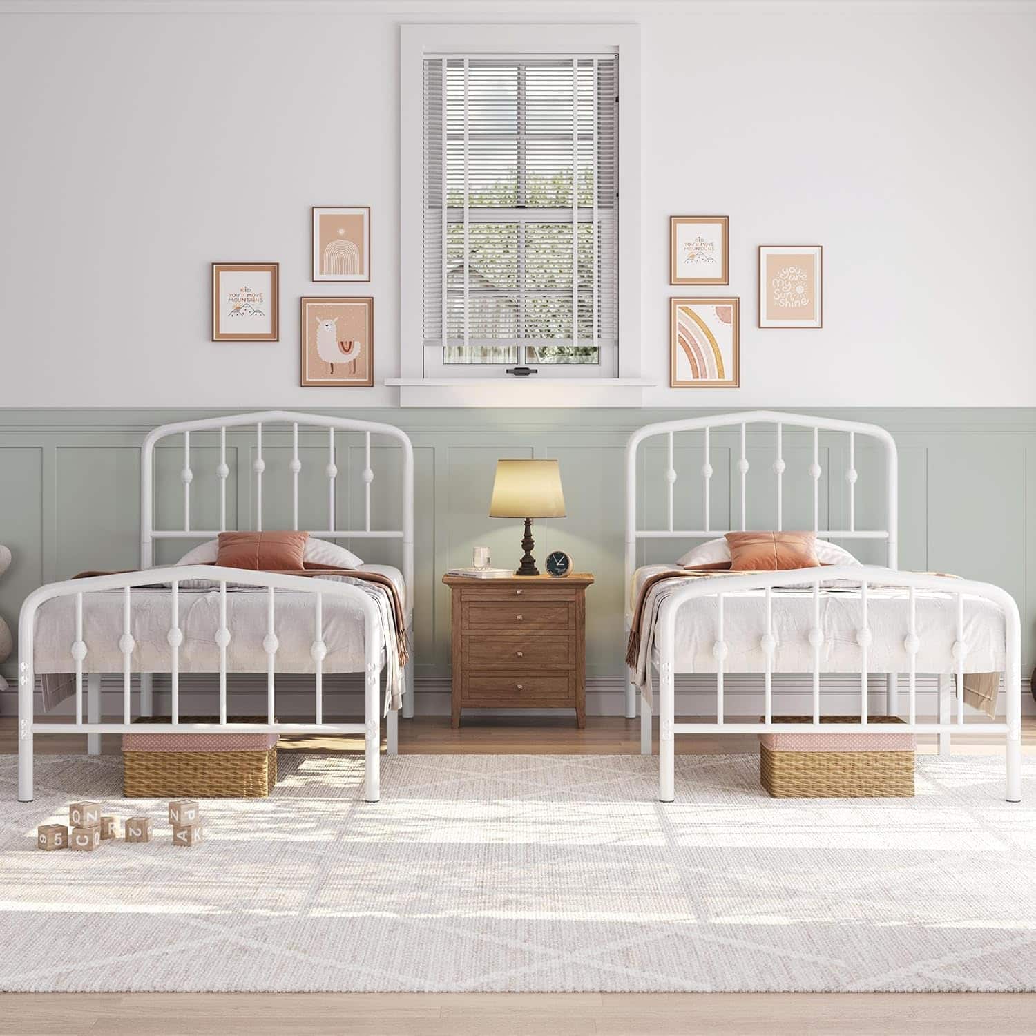 In a world where trends come and go, the timeless appeal of a white finish remains steadfast. This pair of bed frames stands as a testament to design resilience, gracefully integrating into traditional, farmhouse, or more eclectic décor settings. A vintage charm flows through its iron veins, yet it whispers a promise of modern functionality.